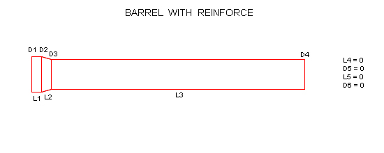 Limitations and Accuracy Barrel length must be more than 4" (100mm) and less than 35" (900mm). Barrel diameters must not be more than 2" (50mm). The barrel is assumed to be round. Barrel dimensions that approach these dimensional limits may result in instabilities in the program which give rise to "strange" results. If you change a particular dimension gradually and there is a sudden change in the predicted vibration, this will most probably be due to an instability in the program. The muzzle angle shown in the graph is only approximate as the actual value will depend on a number of factors which are difficult to model. Varying the parameters of the model will show how the amplitude will vary, however. For the purposes of modelling the barrel, the barrel is divided up into a number of short "Finite Elements" such that the length of each element is around 0.8" (20mm). Small changes in overall barrel length will be accurately modelled as changing the barrel length just results in a small change in the length of each element. However, the position of any abrupt change in barrel diameter (say, where a weight is put on the barrel) cannot be modelled with a resolution of much better than an element length. This means that the program will not accurately follow any changes in the position of a barrel weight or tuner (say) if the change is less than around 0.8" (20m). In practice, small changes in the position of weights or tuners on the barrels of centerfire rifles do not have much effect on the barrel vibrations, so this is of little consequence. The model assumes that the rifle is essentially in free space and unconstrained by any rests or clamps as it recoils. Shooting a rifle off bags is a fair approximation to this. However, if small calibre rifle is gripped tightly or pulled hard into the shoulder then the recoil dynamics could be affected. The model assumes that the stock and other parts of the rifle are "stiff" and do not contribute to the vibrations themselves. However, it is assumed that the action will not be stiff and to model this, a section is added to the back of the barrel which is 4" (100mm) long and 1.5" (38mm) diameter, with a bore of 1" (25.4mm). In high power centerfire rifles, this would appear to be a reasonable approximation. This added section is for modelling purposes only and does not appear in the drawing of the barrel created from the given barrel dimensions. No account is taken in this model of the interaction of the bullet travelling up the barrel with the barrel vibrations. The program was created initially to try and understand the vibrations on barrels of rimfire rifles. It turned out that the pressure-time curve for the tiny rimfire cartridge is too short for the consequent vibrations to be modelled successfully by a model of this sort, and vibrations from other sources would appear to be significant in rimfire rifle barrels which are not modelled here. However, it would seem that the much longer pressure-time curve of larger calibre centre-fire rifles, and the much higher recoil, mean that this model can be successfully used for such rifles. It should be emphasised that this model is not suitable for rimfire rifles.